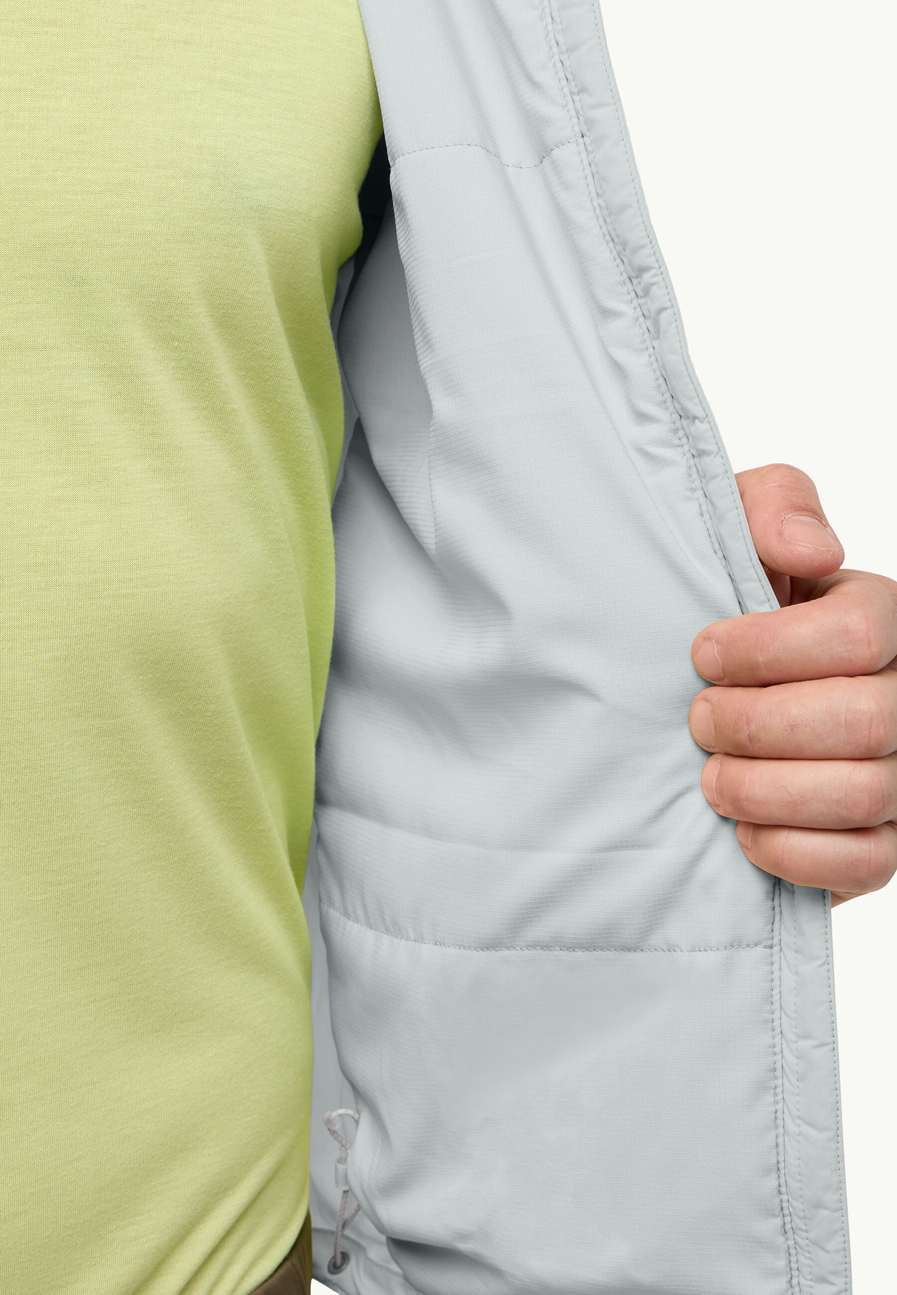 For light hiking in cool weather, the PRELIGHT INSULATED JACKET combines wind resistance with breathability and cozy comfort. Built from a recycled TEXASHIELD CORE PLAIN WEAVE STRETCH fabric, it is lightweight and breathable enough to move with you as you bound your way up a technical trail.